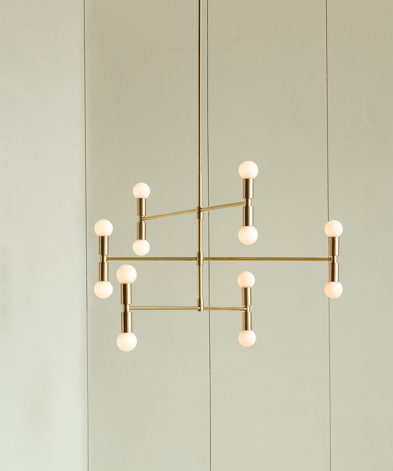 La collection Dot juxtapose l’aspect brut des ampoules dénudées à la texture riche du laiton. La composition géométrique des lampes est d’une grande précision, avec pour objectif une ligne pure, des surfaces marquées, et des points de lumière choisis. Inspirés des propriétés réflectives du laiton, les luminaires de la collection Dot produisent un effet à la fois atmosphérique et imposant.