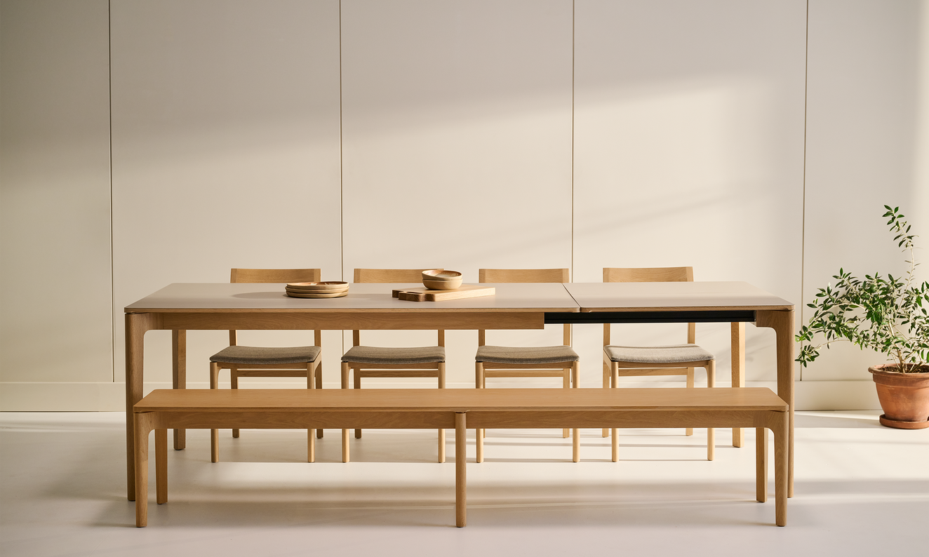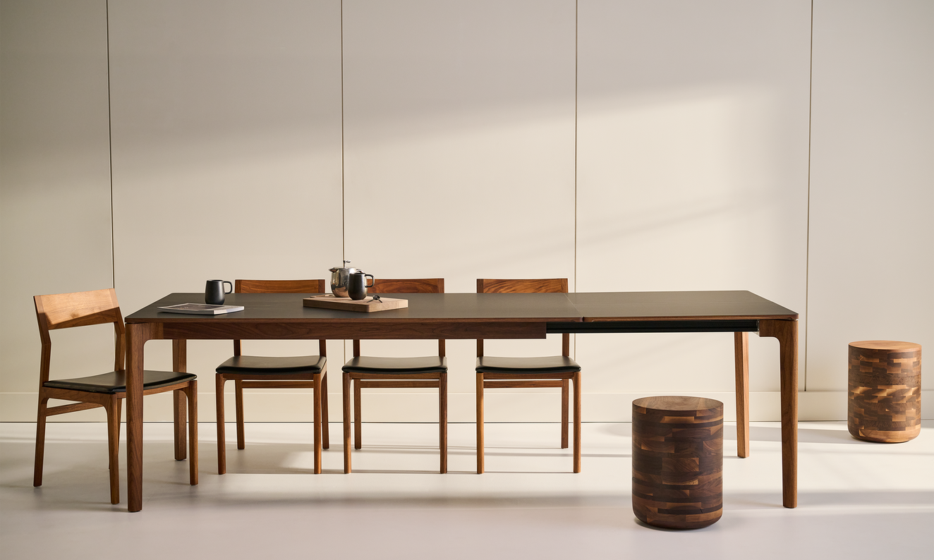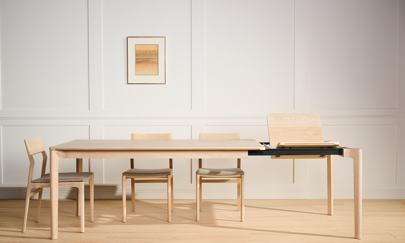 La T113x est une élégante table extensible construite avec des panneaux intégrés qui se déplient de l'intérieur. Pratique, la T113x est disponible en bois massif ou avec un plateau Fenix NTM en acrylique. Elle est également disponible en deux tailles.